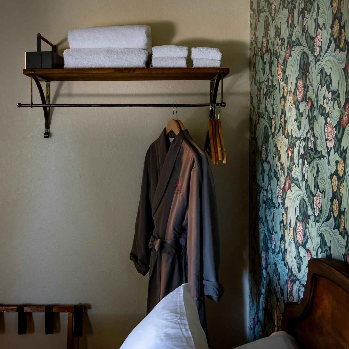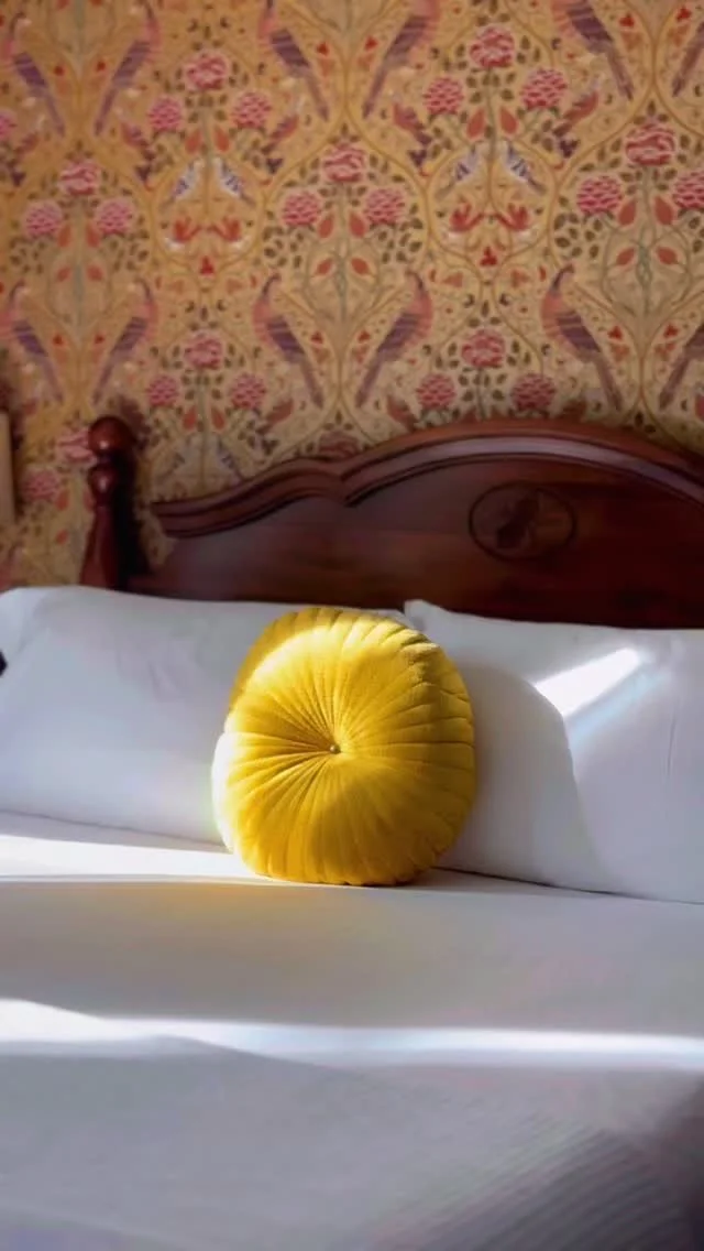 Adorned in William Morris wallpapers and paint colors chosen for their warmth and depth, each room takes on a soft, intimate glow in the ambient light—feeling storied, inviting, and deeply welcoming.